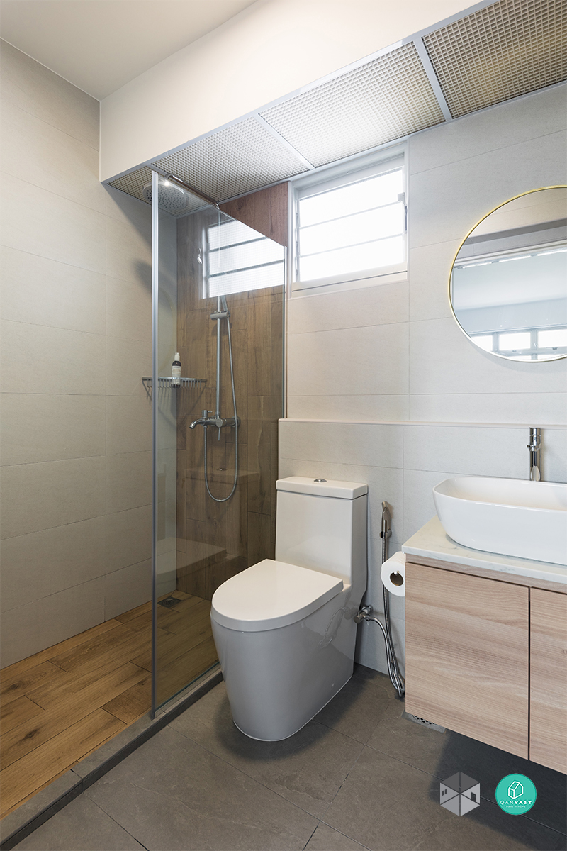 Select flooring materials that are water-resistant, durable, and easy to clean. Consider tiles, vinyl, or waterproof laminate flooring. For walls, choose moisture-resistant paint or tiles that complement the overall HDB bathroom design. Coordinated flooring and wall finishes contribute to a cohesive and aesthetically pleasing look.