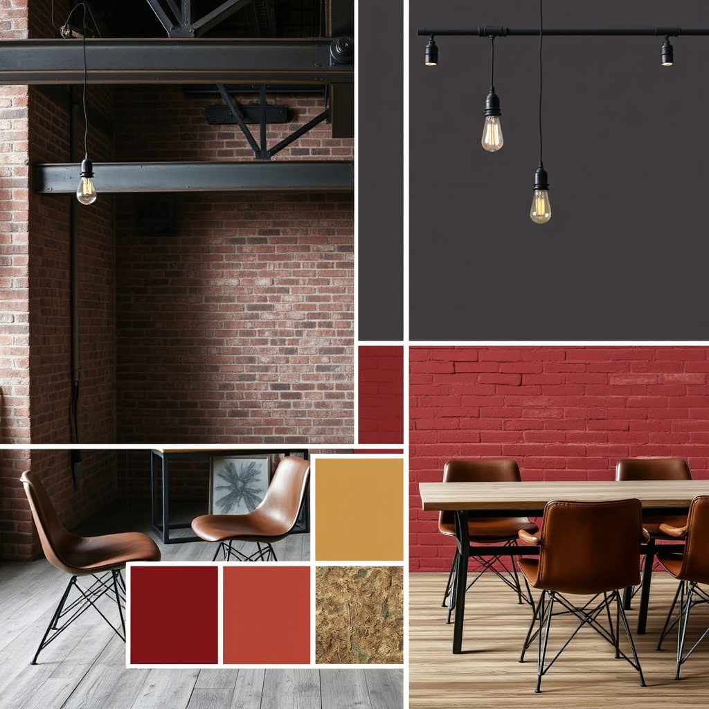 - Materials: Exposed brick, raw metal, reclaimed wood
